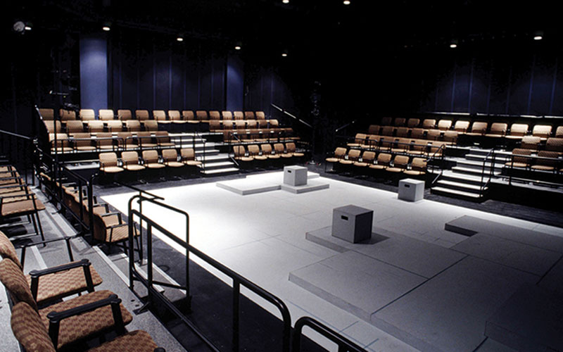 تئاتر پانصدنفره و بسیار صمیمانهی «استپن وولف» در شیکاگو نمونهی کامل و جامعی است. فرم «کلاسیک امریکایی» دارد (بسیار یادآور سلوین است) اما با فولاد و بتن خام نازککاری شده. فضای اصلی نمایش در قسمت جلو صحنه و در دل جایگاه تماشاگران است اما تمام کف صحنه و قسمت جلو آن را برای تغییر شکل و ارتفاع محدودهی بازی میتوان برداشت. بههمینترتیب، تئاتر جدید دوطبقه و پانصدنفره «رپورتوار سنخوزه» نیز پیشصحنهی بسیار منعطفی دارد که میتوان کف، طاق و لژهای کناری آن را با چیدمانی جدید تغییر شکل داد.