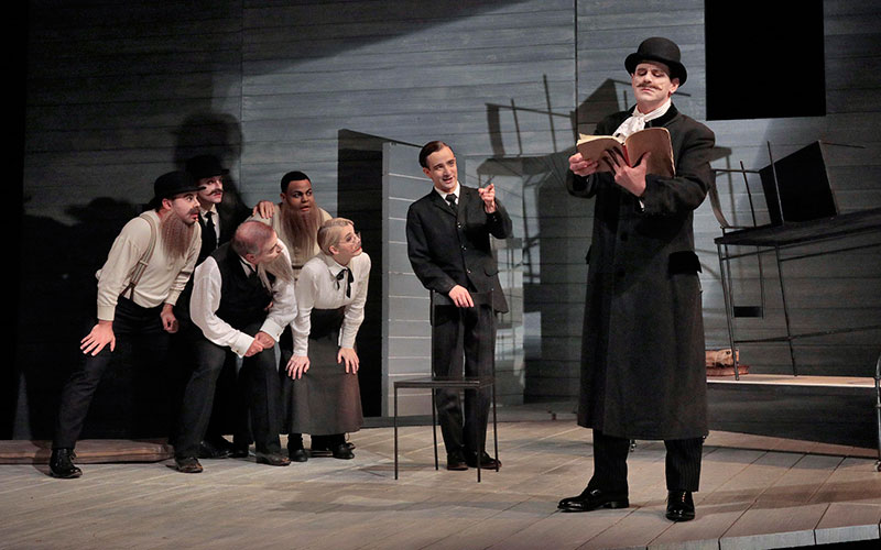 این صحنهپردازیِ دقیق و موشکافانه بهسرعت پایان مییابد؛ اما در آن حفراتی هست که به سوی شهر، مزرعه، قصر، پلکان، راهرو و اتاق زیر شیروانی راه دارند. شبیه طراحیِ صحنهی تئاتر است و بر پایهی همان اصول بنا شده. این طراحی صحنه شامل دکور و اشیای واقعی است: رئالیستی، باورپذیر و از صحنه و زوایایی خاص برخوردار است، از هستی قائمبهذاتی برخوردار بوده، به جایی منتهی شده و چیزهایی را بازنمود میسازد؛ درست مانند آن نیمکتهایی که در آن پارک عجیب نواهوتا بودند؛ صحنهای شاعرانه و نمایشی است.