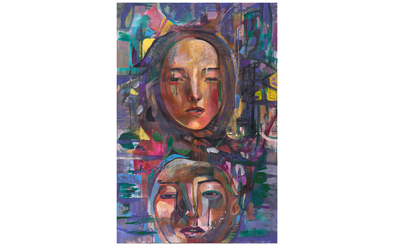 از همهی اینها که بگذریم بنیاسدی یک ویژگی شخصی هم دارد و آن خجالتی بودن یا دوری از شلوغی و هیاهوست. با آنکه چندین جایزه برده، استاد دانشگاه است و نمیتوان حضور او را در هنرهای تجسمی نادیده گرفت، بهنظر میرسد آنچنان که باید دیده نشده یا نخواسته دیده شود. او در حال حاضر دوازدهمین نمایشگاه خود را با عنوان «رنگ رخ-سار» در گالری ساربان به نمایش گذاشته است که در آن میتوان جدیدترین تجربههای او را برگرفته از دنیای تازهاش تماشا کرد. تابلوهای او در این نمایشگاه پرترهها و تصاویری از زنانی هستند که خیره به چشمهای بیننده زل زدهاند. حسی را نمیتوان از صورتهای آنها دریافت کرد اما وقتی یکبهیک از مقابل تابلوها بگذرید، اندوهی را حس میکنید، البته نه از آنگونه غمهایی که ناراحتتان کند. حسی از همدردی با این زنها همراهتان میشود و زمانی که اشکهای تیرهای را که از گوشهی چشمهای برخی از آنها پایین میآید میبینید، دوست دارید بایستید و حداقل برای چند ثانیه آنها را تماشا کنید، مخصوصاً که رنگهای گرم و درخشان بهکاررفته در نقاشیها در تناقص با فضای آثار قرار دارند و همین، فضای کار را عجیبتر میکند. انگار بنیاسدی در نقاشیهایش هم، همچون تصویرسازیهایش، روایت میکند، روایتی از فضای پیرامون که اینبار ظاهراً قرار است از «رنگ رخ-سار» متوجه آن شویم. او البته «سر درون» را به تفسیر و تأویل بیننده واگذاشته است.